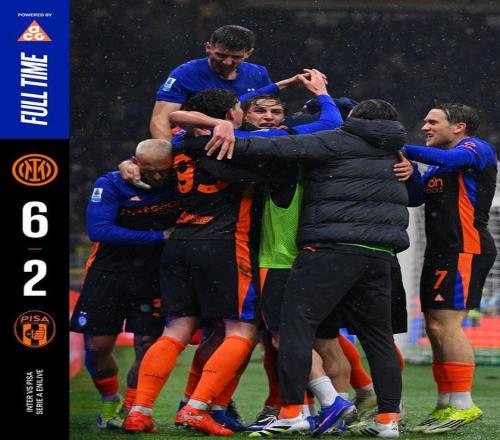 北京时间1月24日,在意甲第22轮的角逐中,国际米兰在开场23分钟就0-2落后的情况下,最终连进6球完成逆转,主场6-2战胜升班马角逐,暂时以6分优势领跑积分榜。