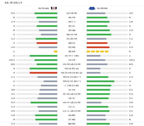 第17分钟,希门尼斯射门,米科连科自摆乌龙,富勒姆1-0埃弗顿