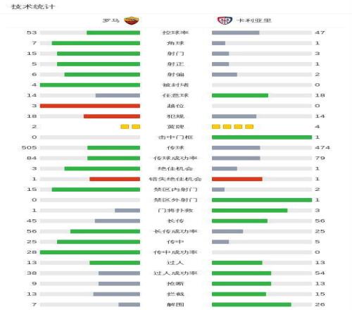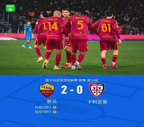 ±±¾©Ê±¼ä2ÔÂ10ÈÕÒâ´óÀû×ãÇò¶¥¼¶ÁªÈüµÚ24ÂÖ£¬ÂÞÂíÖ÷³¡¶ÔÕó¿¨ÀûÑÇÀï¡£½ÇÖðÖУ¬ÂÞÂíÇòÔ±ÏȺóͨ¹ýÁ½´ÎÍŶÓÅäºÏ£¬ÓÉÂíÂ×Íê³É½øÇò£¬×îÖÕÂÞÂíÒÔ2-0սʤ¿¨ÀûÑÇÀï¡£
