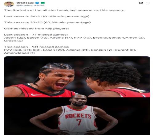 2025-2026Èü¼¾µÄNBA¼´½«½øÈëÈ«Ã÷ÐÇÖÜÄ©£¬ÐÝ˹¶Ù»ð¼ý¶ÓÈ«Ã÷ÐÇÖÜĩǰÄõ½33ʤ20¸ºÅÅÔÚÎ÷²¿µÚËÄ£¬»ð¼ý¶Ó¾àÀëÎ÷²¿µÚ¶þµÄÂí´ÌÓÐ×Å4.5¸öʤ³¡²î±ð½Ï´ó£¬¶øÉÏÈü¼¾µÄ»ð¼ý¶ÓÄõ½ÁËÎ÷²¿µÚ¶þµÄ¾«²Ê½á¹û£¬ÈËÃÇ¿ªÊ¼»³ÒÉ»ð¼ýÒý½ø¿ÎÄ-¶ÅÀ¼ÌØÊÇ·ñËãÀֳɡ£