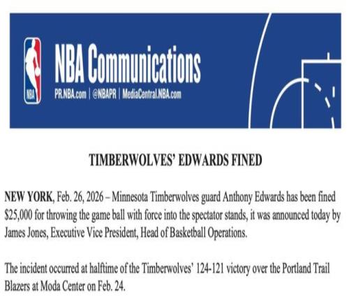 ±±¾©Ê±¼ä2ÔÂ27ÈÕ£¬NBAÀºÇòÔËÓªÖ´Ðи±×ܲÃղķ˹-Çí˹½ñÈÕÐû²¼£¬ÉÁÖÀǺóÎÀ°®µÂ»ª×ȺÍħÊõºóÎÀ±´¶÷¶¼ÒòÓÃÁ¦½«½ÇÖðÓÃÇòÈÓÏò¹ÛÖÚϯ£¬¸÷±»·£¿î25000ÃÀÔª¡£