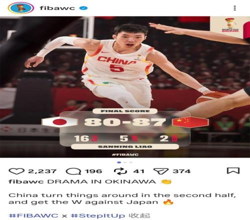 Èüºó£¬¹ú¼ÊÀºÇòÁªºÏ»á£¨FIBA£©ÊÀ½ç±µÄ¹Ù·½Õ˺ÅдµÀ£º¡°³åÉþÉñ¾ç±¾£¡ÖйúÄÐÀº´ÓÈÕ±¾Íµ×ßÒ»³¡Ê¤Àû¡£¡±£¨China with a sneaky win over Japan£©£¬¡°Sneaky¡±Ò»´ÊÒþº¬¡°¹íËî¡¢±°±É¡±µÄ±áÒ壬±»ÖÊÒɰµÖ¸Öйú¶Óʤ֮²»Îä¡£