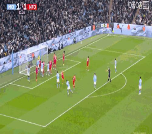 塞门约迎球凌空端射,行动一气呵成。皮球如出膛炮弹,直窜网窝!1-0,曼城取得领先。