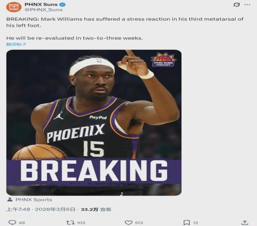 ´ËÒÛʺó£¬Ì«Ñô35ʤ27¸ºÈÔ¾ÓÎ÷²¿µÚ7£¬ÂäºóµÚ6µÄºþÈË2¸öʤ³¡£¬ÁìÏȵÚ8µÄÓÂÊ¿3¸öʤ³¡¡£½ñÌìÈüǰ£¬Ì«Ñô¹Ù·½Ðû²¼£ºÇò¶ÓÖзæÂí¿Ë-ÍþÁ®Ä·Ë¹×ó½ÅµÚÈýõŹǷºÆðÓ¦Á¦·´Ó¦£¬½«ÔÚ2-3ÖÜÖ®ºó½ÓÊÜÖØÐÂÆÀ¹À¡£Í¨ÀýÈüÄÜ·ñ¸´³ö£¬¶¼ÊÇδ֪Êý¡£