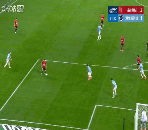 9分钟后,费利佩捅禁区捅射破门!蓉城队快速将比分反超成2-1!第45+1分钟,王东升右路传中,门前埋伏的胡荷韬端射破门,半场结束,蓉城队就将比分改写成3-1!