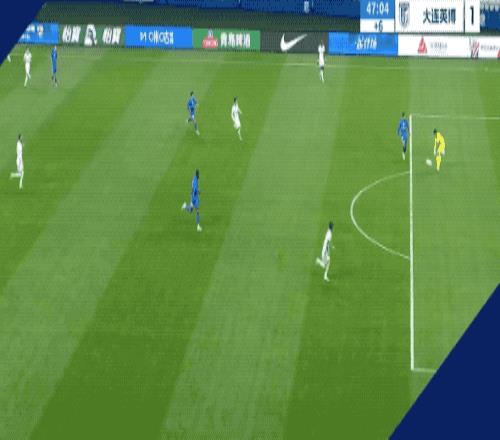 Á½¶Ó»Øµ½Í¬Ò»ÆðÅÜÏߣ¬´óÁ¬Ó¢²©µÄ½ø¹¥ÒÀ¾É¼ò½àÃ÷ÁË£¬ÂíÀ³À³ÔÚÓÒ·Á¬Ðø»Î¶¯ºóµÄС½Ç¶ÈÉäÃÅ£¬Æ«³öµ×Ïß¡£