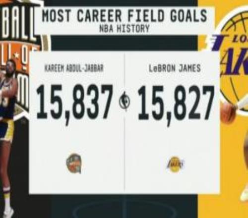 再冲一个历史第一詹姆斯差11记运动战进球即可逾越贾巴尔