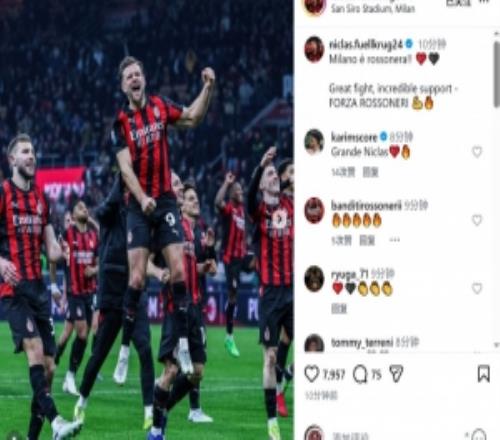 菲尔克鲁格社媒:精彩的战斗+不可思议的支持,米兰是红玄色的!